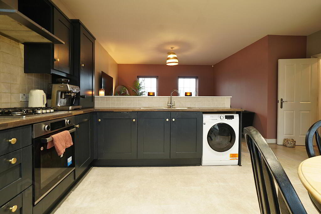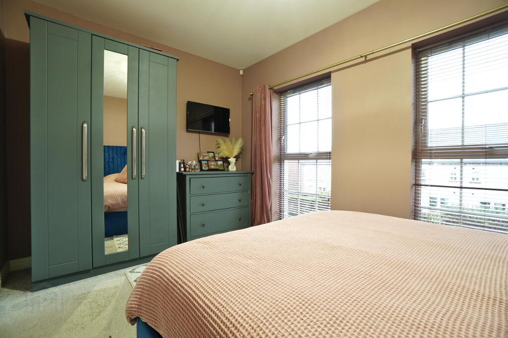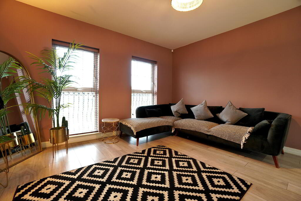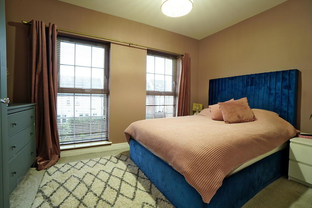 There are three well-proportioned bedrooms, complemented by a modern four-piece bathroom suite finished to a high standard. Additional benefits include gas central heating, uPVC double-glazed windows, a security alarm system, and two designated car parking spaces.