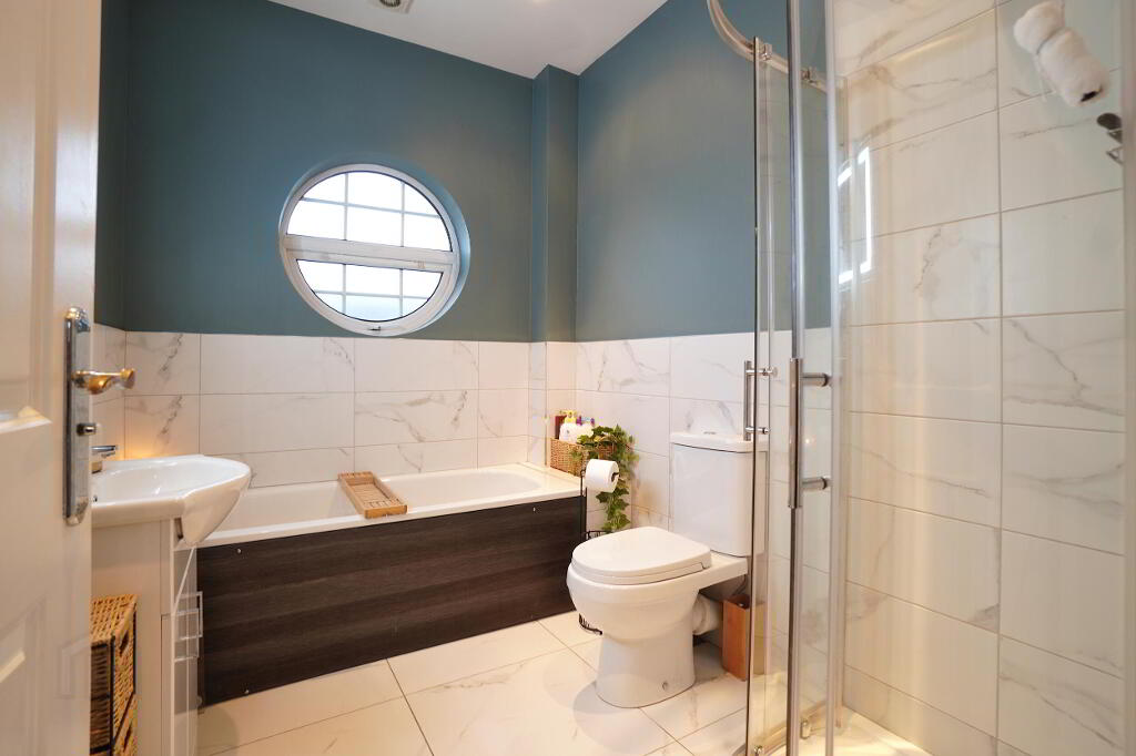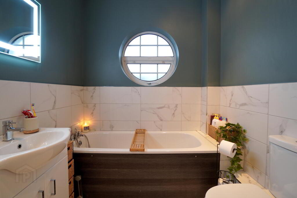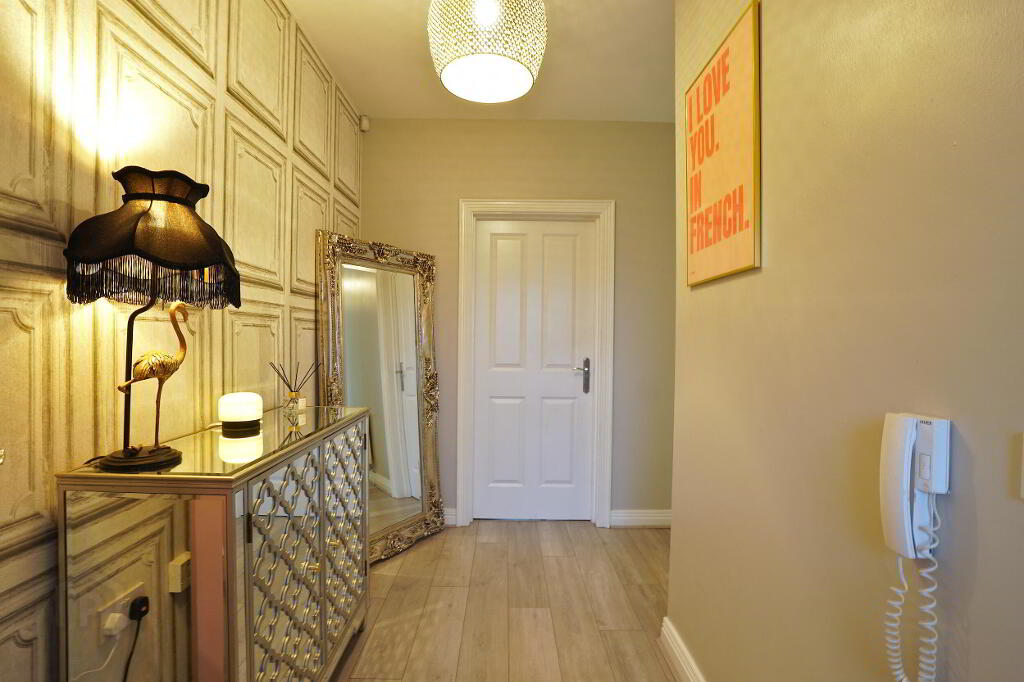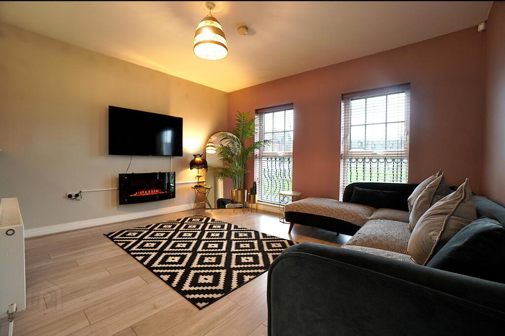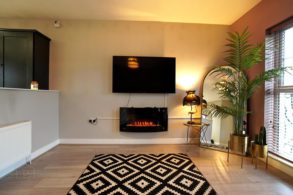 There are three well-proportioned bedrooms, complemented by a modern four-piece bathroom suite finished to a high standard. Additional benefits include gas central heating, uPVC double-glazed windows, a security alarm system, and two designated car parking spaces.