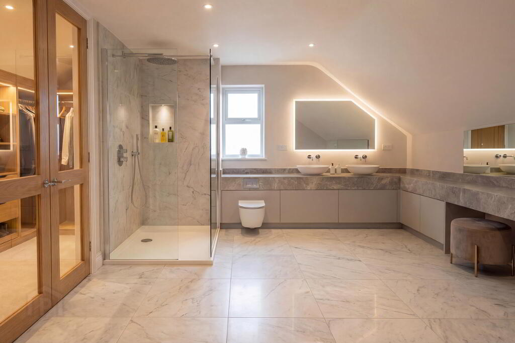 Every element of the property reflects careful consideration and superior craftsmanship. Underfloor heating runs throughout, ensuring year-round comfort, while classic vertical sliding sash windows offer a timeless aesthetic with modern performance.