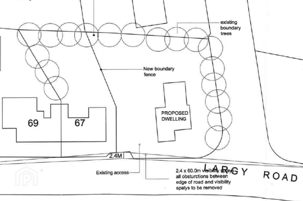 67 Largy Road occupies a prominent corner site with outline planning permission to construct a new single dwelling 22m north east of 67 Largy Road. There is currently a semi-detached 3 bedroom bungalow on the site.